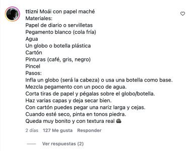 Pero lejos de comentarios serios sobre arte o historia, muchos usuarios chilenos aprovecharon la sección para protestar de una forma bastante creativa: dejaron desde recetas de arroz con leche, panqueques, cuchuflí y sopaipillas hasta exigencias directas para que devuelvan el moái a su tierra natal.