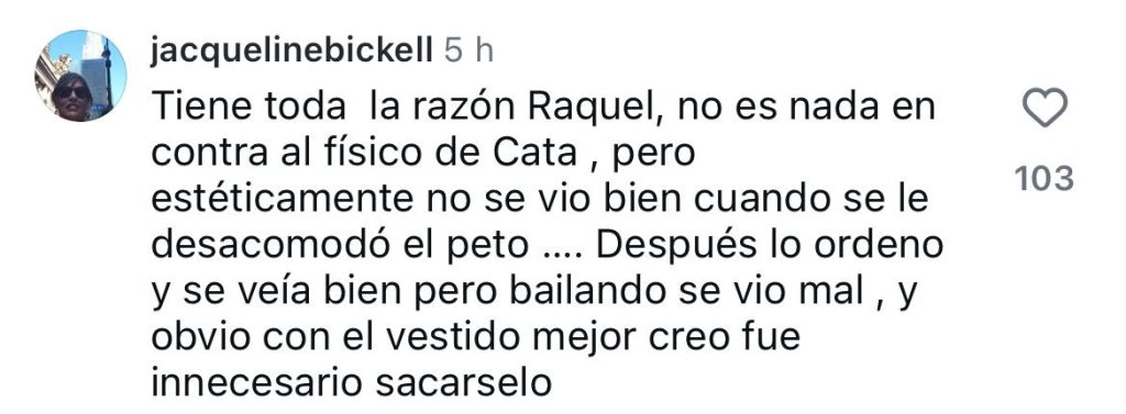 La polémica surgió tras la presentación de la bailarina e influencer Cata Days, quien cerró su coreografía desprendiéndose de su vestuario y quedando con un hot pants y un peto color piel. Antes de evaluarla, Argandoña cuestionó la decisión artística: “¿Me puedes explicar por qué te sacaste los zapatos y el vestido en la coreografía?”. Days respondió con evidente incomodidad que el gesto buscaba transmitir que “no necesitamos un vestido brillante, unos zapatos y una corona para brillar”.