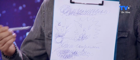 La predicción se basó en una psicografía, una forma de escritura o dibujo automático, que el médium realizó en vivo. En el papel, mostró un boceto con dos figuras principales identificadas con las iniciales “J” y “K”, que asoció directamente a las candidaturas de Jeannette Jara y José Antonio Kast.